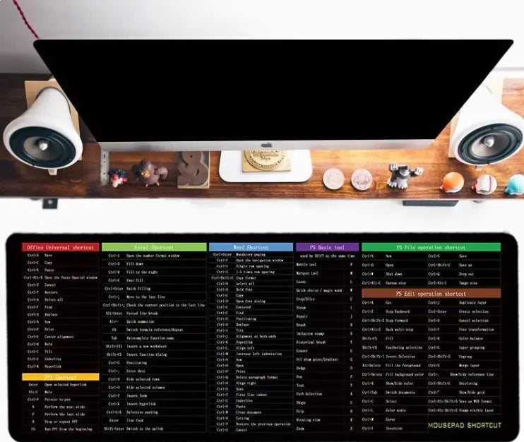 This is a practical and stylish accessory designed to enhance productivity by providing quick access to essential keyboard shortcuts. Ideal for students, office workers, and tech enthusiasts, this non-slip mouse pad ensures smooth mouse movement while serving as a handy reference guide for frequently used commands.
